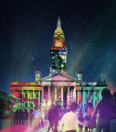 A huge art installation by NOVAK, which will be YARN: a stunning large-scale projection onto Bolton’s iconic Town Hall, featuring music by Ed Carter. This installation will transform the building into a series of captivating scenes filled with vibrant colour, dynamic motion, and immersive sound.
