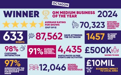 Octagon’s Chief Executive, Roddy Gauld commented:“During the last twelve months we’ve delivered our promise to be an ambitious, inclusive and useful theatre for the people of Bolton, and a leading organisation in the UK’s theatre sector.”