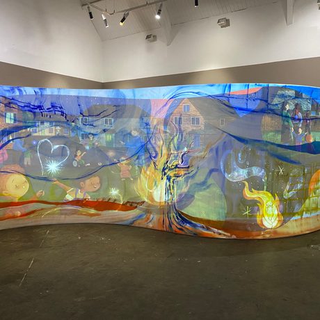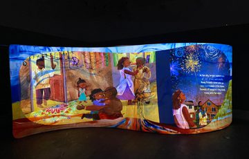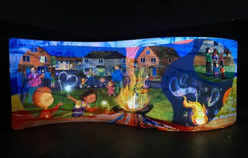 The storytellers will perform in front of this interactive display.